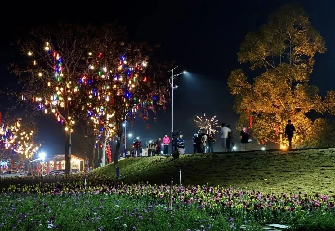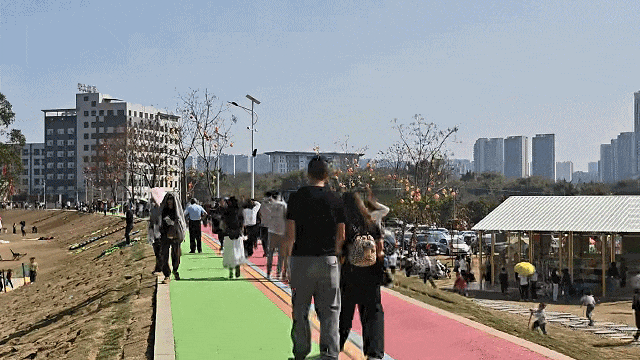 春节前夕,位于怀城街道石龙村的石龙河集趣野公园正式对外开放,并迅速成为今年春节市民的“新宠”以及本地“流量担当”。该项目依托中洲河湾优越的生态资源,打造了集生态、休闲、文化于一体的城市活力空间。彩虹滨水步道、多彩花海、水岸音乐会等特色元素吸引大量游客前往打卡,市民游客或搭帐篷围炉小聚、或沿河岸漫步休闲,日均人流量居高不下。