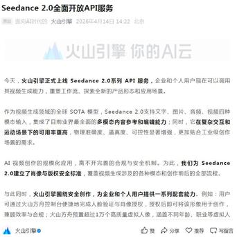 从内容创作到硬核科技配资在线导航官网,Seedance 2.0 正在展现出越来越强大的通用性与扩展性。它不仅是 AI 视频生成工具,更是驱动未来科技发展的重要基础设施。随着更多领域接入 API,Seedance 2.0 将持续释放技术潜力,让 AI 视觉能力赋能更多行业,推动人类科技迈向新高度。