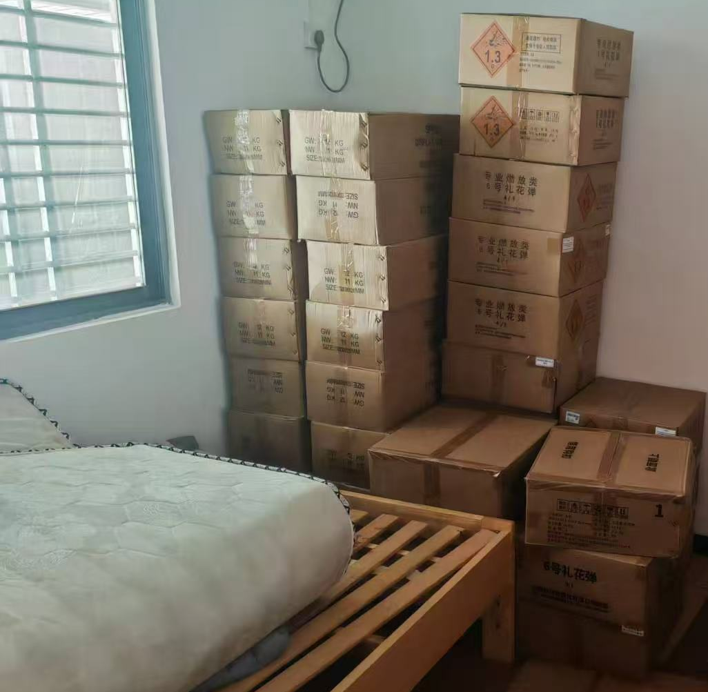 2026年2月10日,兴宁市应急管理局联合公安局,在兴田街道的兴宁市赖亚全烟花爆竹经营部后面的一处民房内,查获26箱非法储存的礼花弹,安全风险隐患极高。
